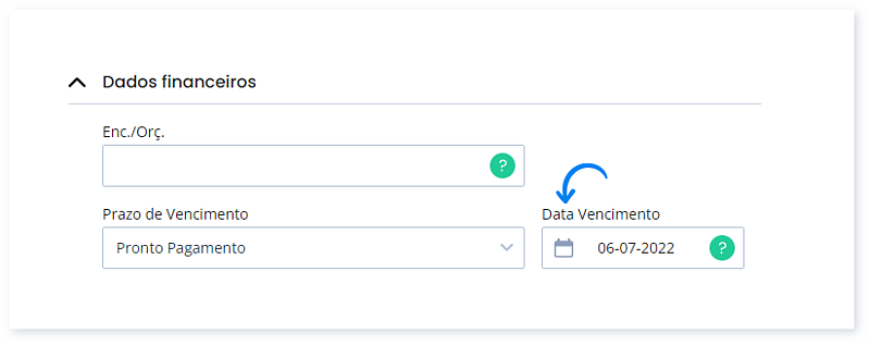 4. Sempre que criar um dos documentos acima listados, a data e o prazo de vencimento deixam de ser automaticamente preenchidos.