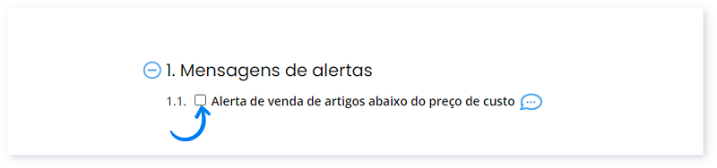3. Ative a opção Alerta nos documentos de venda abaixo do preço de custo.