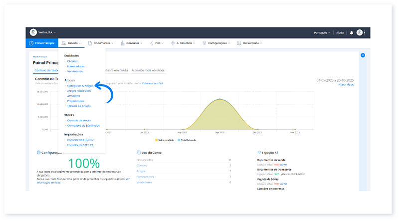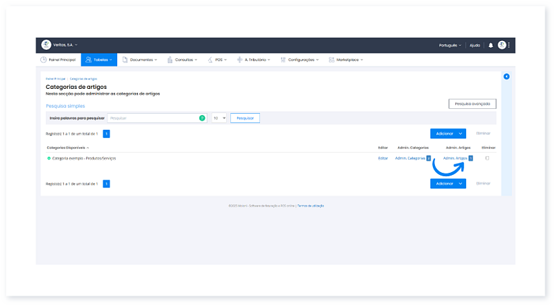 - Aceda à Área de Cliente, e no menu Tabelas, clique em Categorias e Artigos.