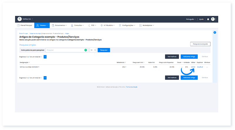 - Clique em Editar para aceder à ficha de detalhe do artigo.