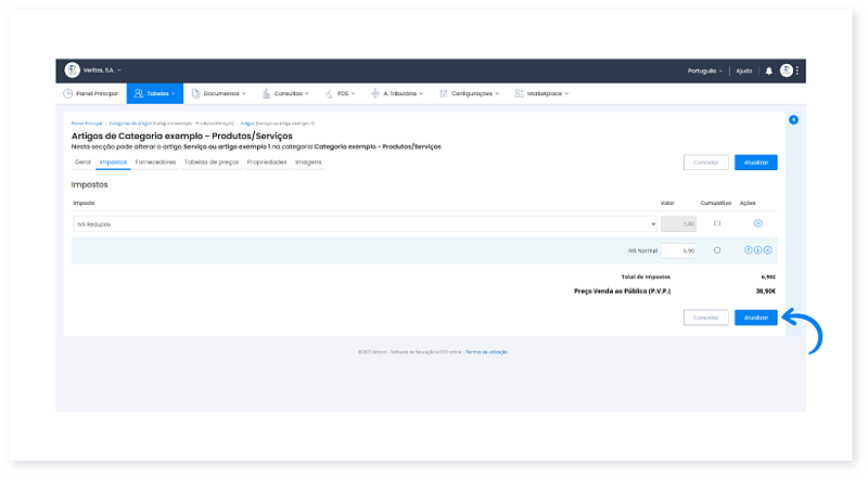 - Por último, clique em Atualizar para o imposto ficar associado a este artigo.