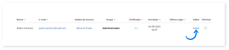 2. Na listagem procure o utilizador ao qual pretende aplicar a restrição e clique em Editar.