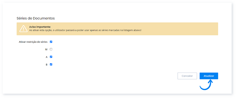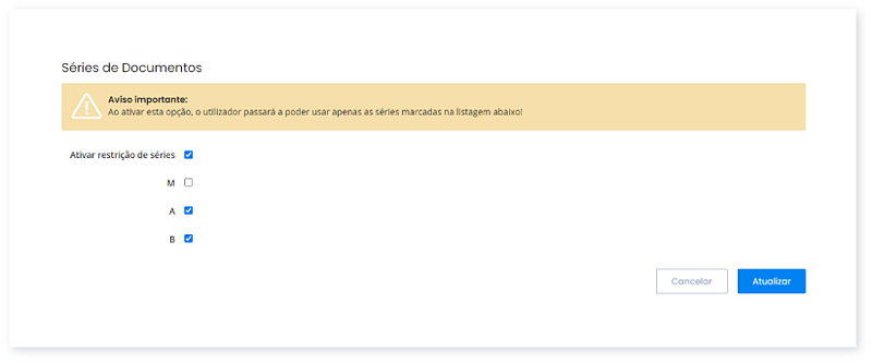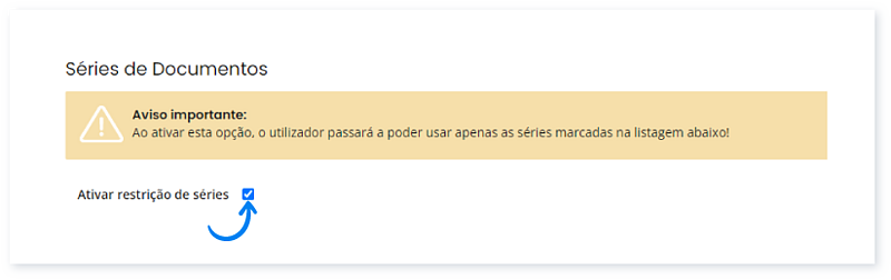 Quando um utilizador tem esta funcionalidade ativada só pode usar as séries que estiverem marcadas como ativas, por isso deve ter em atenção 2 situações: