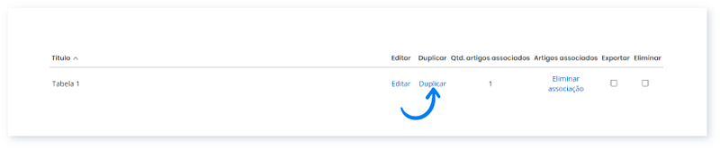 2. Clique em Duplicar na tabela de preços pretendida.