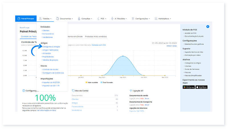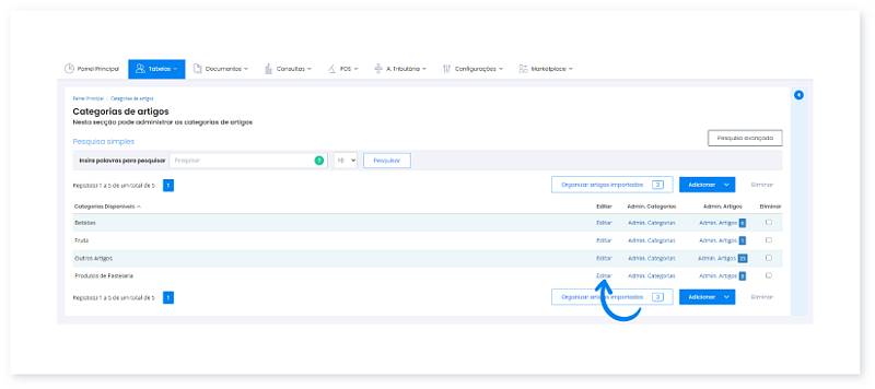 1. Aceda ao menu Tabelas e clique em Categorias & Artigos.