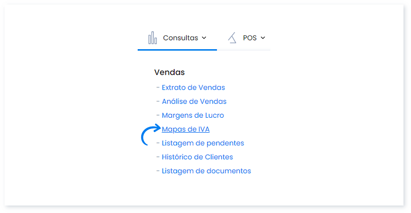1. Aceda ao menu Consultas e selecione a opção Mapas de IVA no grupo Vendas.