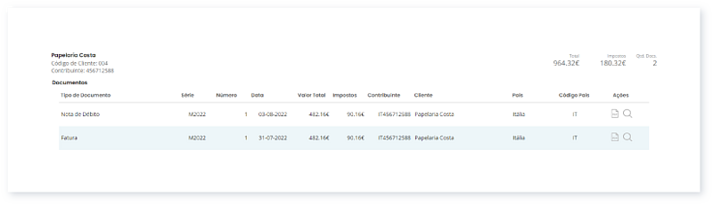 3. Nesta secção pode visualizar os documentos de venda emitidos, segmentados por clientes.
