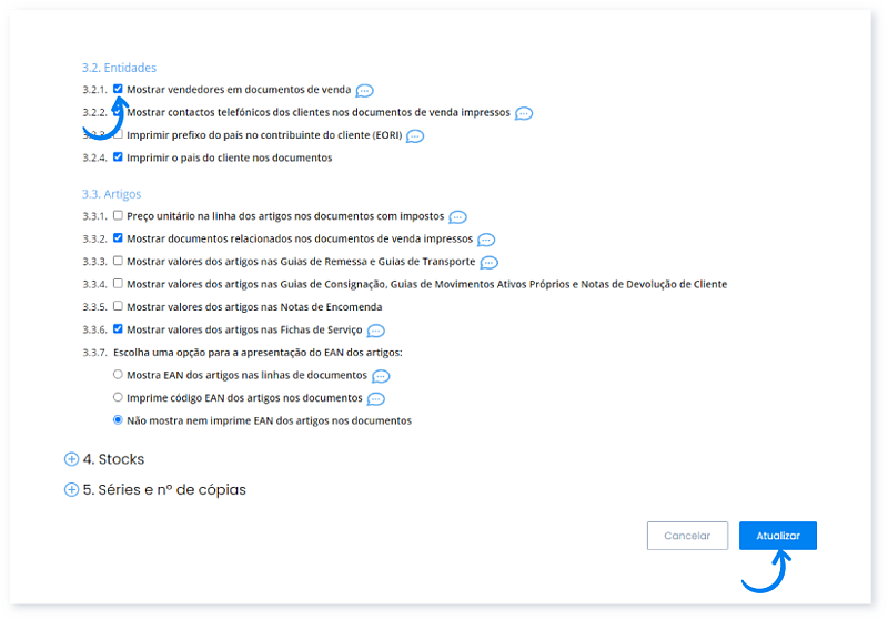 3. Ative a opção Mostrar vendedores em documentos de venda. Clique em Atualizar para guardar as alterações.