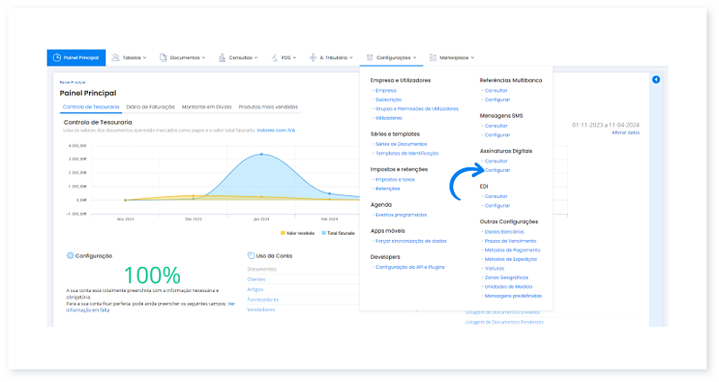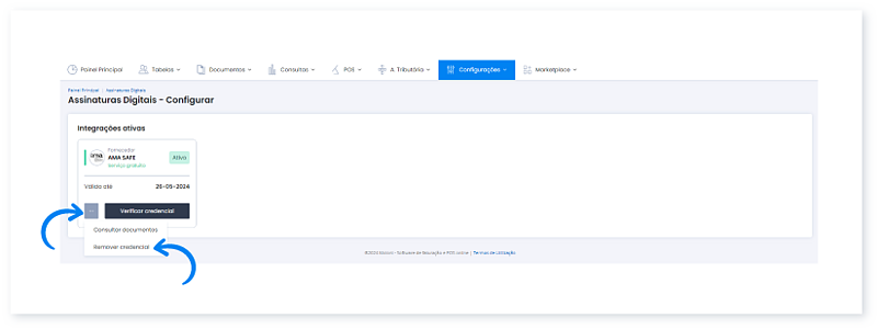 1. Aceda ao menu Configurações e na secção Assinatura digital, clique em Configurar.