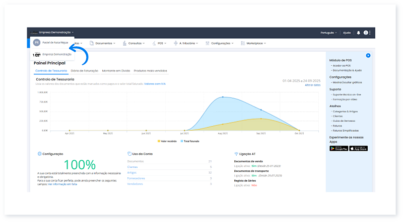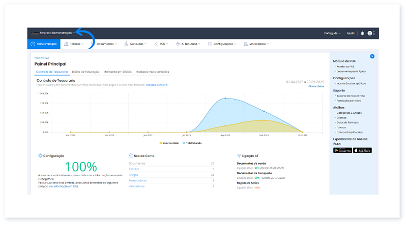 Esta opção é válida para contabilistas ou empresários que gerem múltiplos negócios. Se apenas tem acesso a uma empresa, esta opção não estará visível.