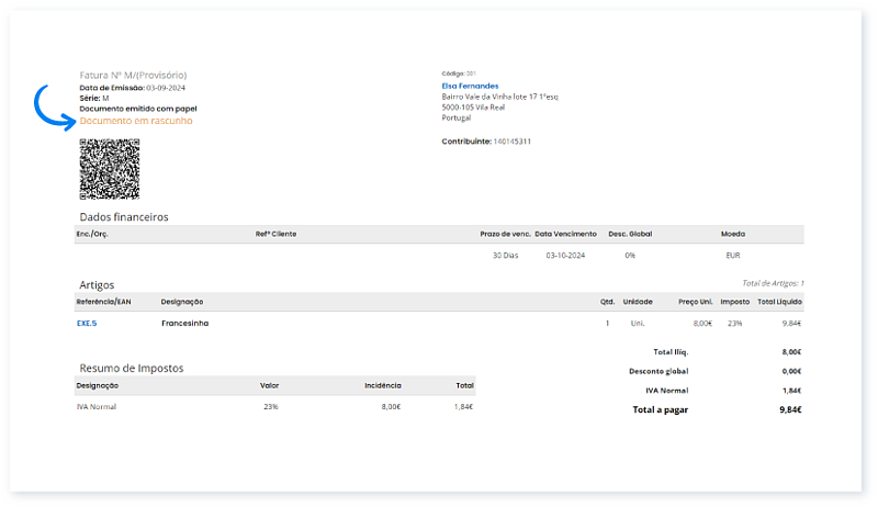 Para alguns tipos de documentos, é possível colocá-los em estado de rascunho já depois de emitidos. Saiba mais sobre este assunto neste Guia.