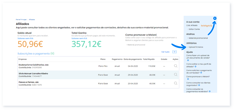 Incluído no programa de Agentes, é possível controlar através do Moloni as comissões que recebe a partir de cada cliente angariado.